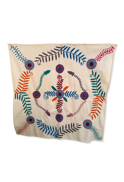 Each 32 x 32 embroidered piece of fabric is a one-of-a-kind creation done by our amazing artisans. Each artisan was invited to create a design that held personal significance and inspiration for them while sharing a heartfelt note about the story behind their artwork. This is what the creator, Jacintha Ramírez Méndez, wrote about her piece: