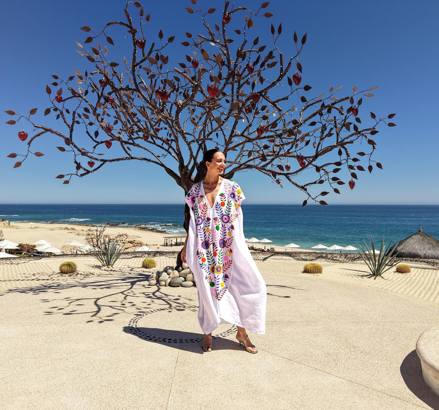 We partnered with Las Ventanas al Paraíso, A Rosewood Resort in Los Cabos, to create a limited-edition collection inspired by the resort’s celebration of Mexican artistry. Featuring a versatile embroidered wrap skirt and a multicolor caftan dress, each piece was handcrafted by artisans in Aguacatenango, Chiapas, showcasing our signature embroidery and honoring the beauty of Mexico.