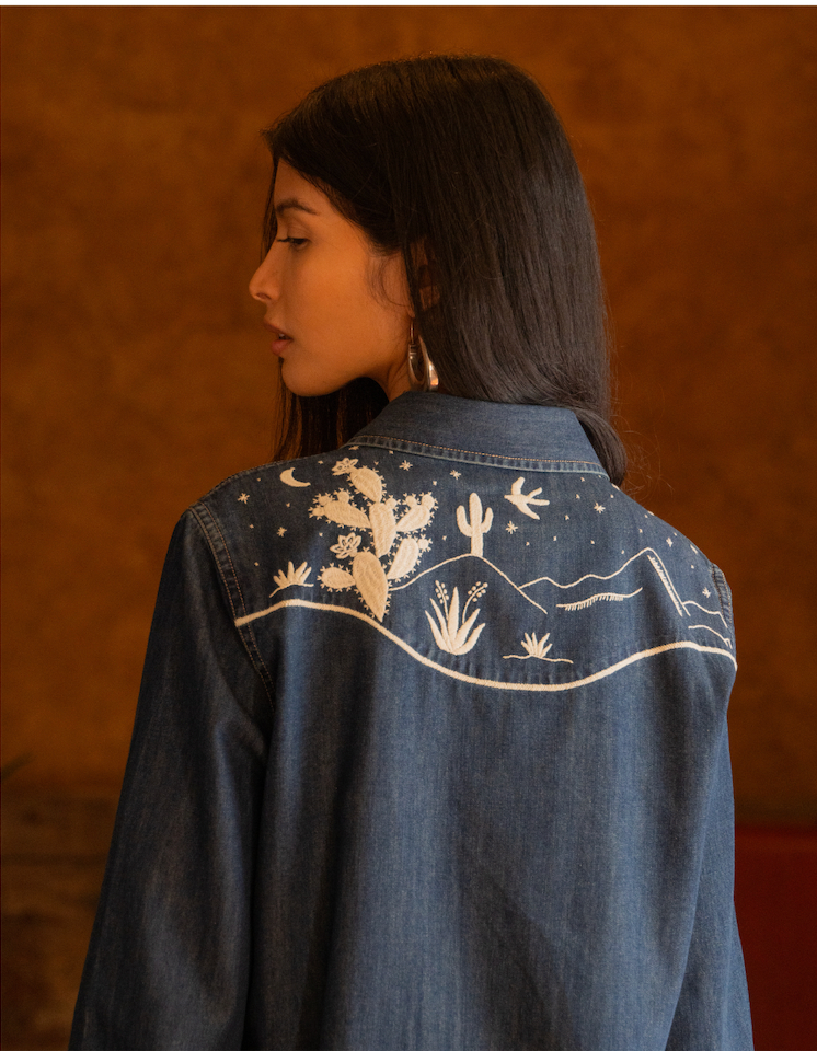 Tecovas, founded in 2015 by Paul Hedrick, is known for its high-quality, handcrafted cowboy boots and Western wear. This partnership combines Tecovas' western heritage with Mi Golondrina's artisan craftsmanship from Mexico. Our collection, handcrafted in the vibrant regions of Chiapas and Oaxaca, Mexico, features uniquely embroidered pieces such as denim jackets. These pieces beautifully blend the rich Mexican style of Mi Golondrina with the distinctive Western flair of Tecovas, offering a perfect fusion of cultural artistry and contemporary fashion.